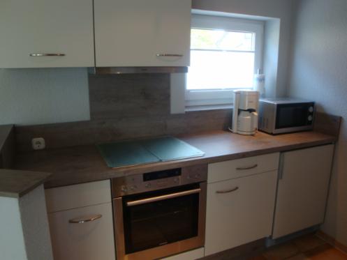 Einbauküche mit Spülmaschine, Kühlschrank mit Gefrierfach, Backofen, Cerankochfeld, Mikrowelle, Toaster, Kaffeemaschine, Wasser-und Eierkocher