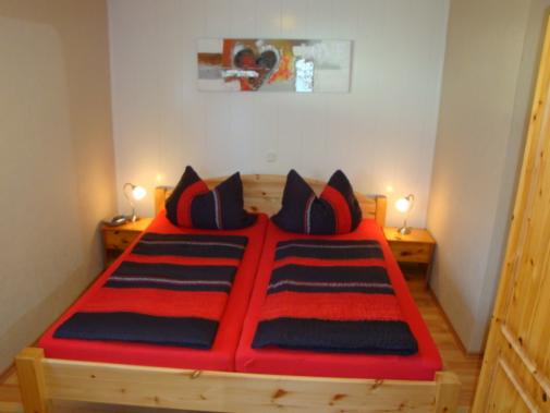Schlafzimmer mit einem Doppelbett (180 x 200 cm), Außenrolladen, Radiowecker und Sat-TV